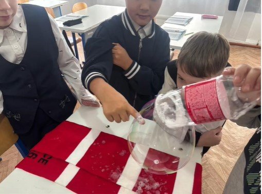 Балалар теориялық материалмен танысып қана қоймай, сабын көпіршіктерін жасау бойынша...