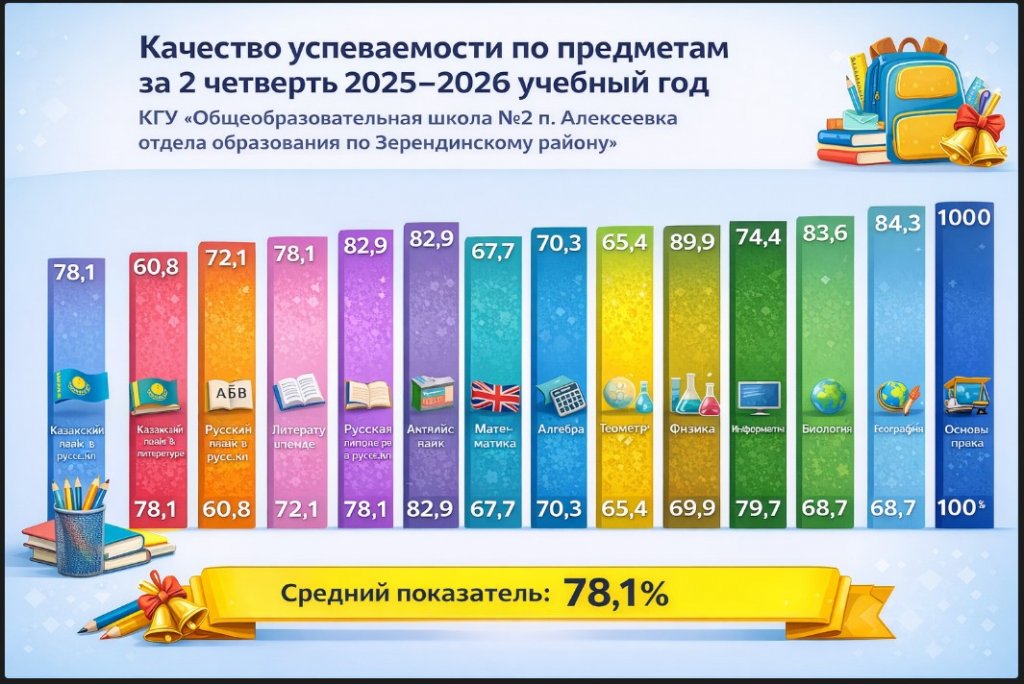 2025–2026 оқу жылының II тоқсаны бойынша пәндер бойынша білім сапасы